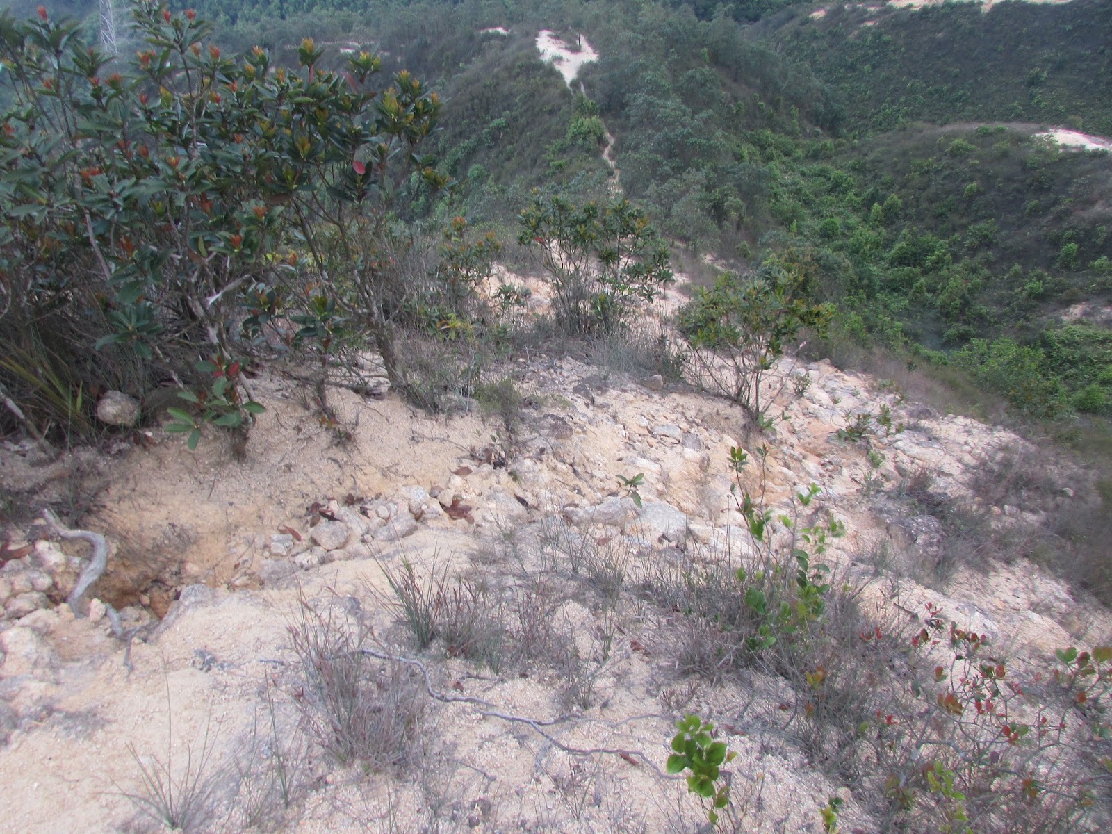又斜又多浮沙碎石的山徑: