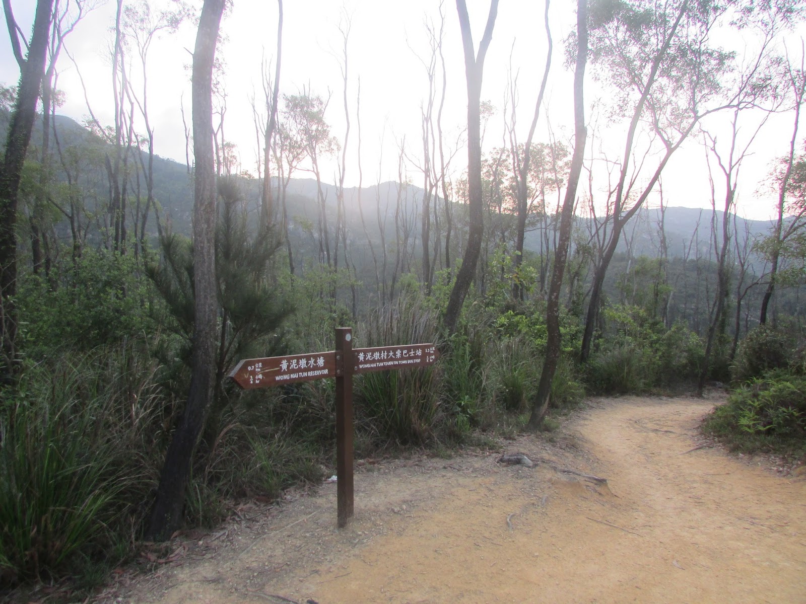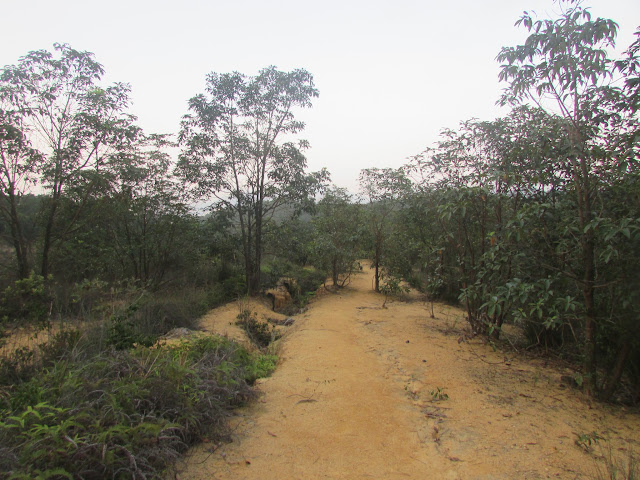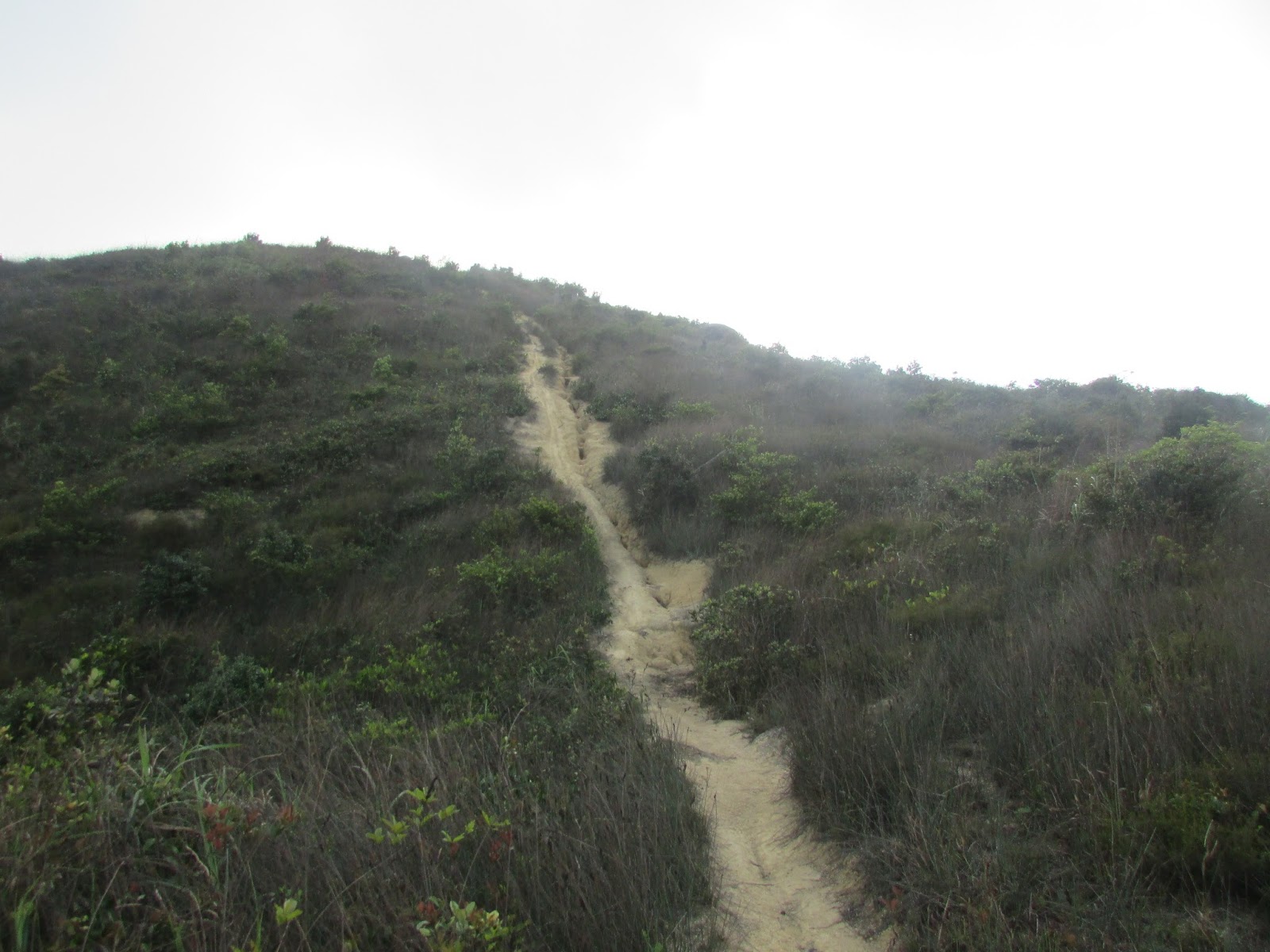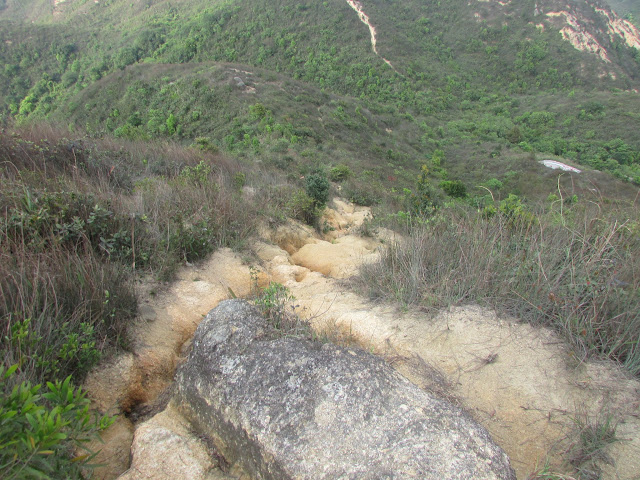 路上有些越野電單車的車轍,其中一段更幾乎垂直而行,真佩服車手的膽量,隨時是比跳樓機更刺激的玩意,那段筆直山徑離「大路」只是幾步之距,假若一下興奮過頭,然後一步踏空,飛墮至幾十米下的谷底,可能要提早「升仙」了。