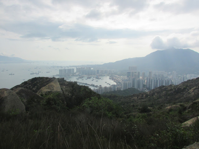 依石間山徑上九逕山,途中可下望青山灣: