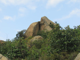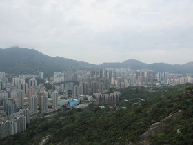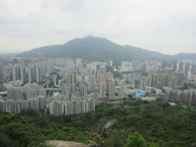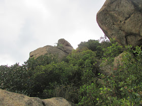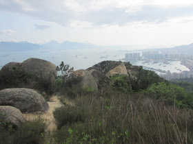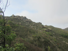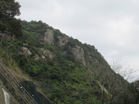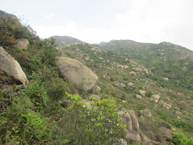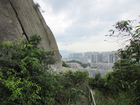 上山途中有不少歧路,路邊間中可見奇石,而且部分的體積還相當大,可是未適應春末的溫度之緣故,加上又處密林,已感到體力消耗得很快,最後在其中一處巨石觀景台上停下休息,欣賞山下屯門新市鎮的風貌,順帶為身體稍為降溫,至於傳說中的「飛來石」就找不著了。