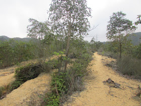 路上有些越野電單車的車轍,其中一段更幾乎垂直而行,真佩服車手的膽量,隨時是比跳樓機更刺激的玩意,那段筆直山徑離「大路」只是幾步之距,假若一下興奮過頭,然後一步踏空,飛墮至幾十米下的谷底,可能要提早「升仙」了。
