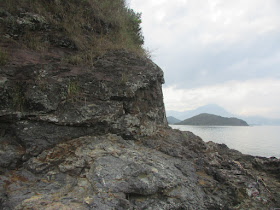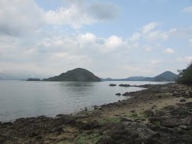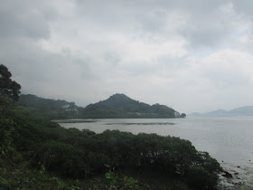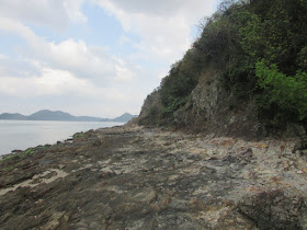 休後還有時間,所以再循岸邊,經小灘堤圍、磨刀坑、了哥岩走至牛屎湖灣,邊走邊賞印洲塘、深圳鹽田的景致,但美中不足的是沿途的青苔數量卻較前幾次為多。雖然正值明顯退潮,惟風力微弱,加上濕度頗高,汗水不停流進眼內,感覺較去年七月走同一段時更為辛苦,直至拐入牛屎湖灣才感到較明顯的風力。