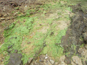 佈滿青苔的石灘: