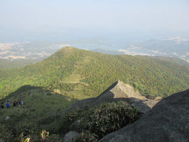 黃牛山頂的景觀以飛鵝山、西貢南、蠔涌谷、鷓鴣山、將軍澳新市鎮及沙田城門河兩旁為主,可惜能見度較前一日稍為失色。由黃牛山頂越過小坳至水牛山(Buffalo Hill,606米),兩座山高度僅差兩米,且各有道明顯山咀向沙田方向散開,堪比一對雙胞胎,所以命名都用了香城最常見的兩類牛隻--黃牛及水牛,英文名字就更簡單了,黃牛山就乾脆加個West字在前面。