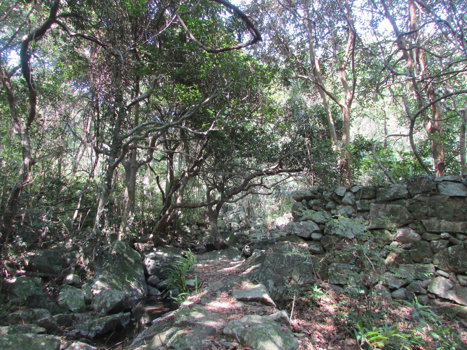 中午在寶琳站出發,穿過寶林邨、將軍澳村上小夏威夷徑(古道)往井欄樹,路邊的一道小瀑布乃古道的「地標」,而附近的「大牛湖」在上世紀初由麵粉廠商人投資所建,在五、六十年代進一步發展成泳場,因將軍澳當年仍未發展,自然變成郊遊熱點,可是那裡亦有多名泳客遇溺,泳場自此關閉。