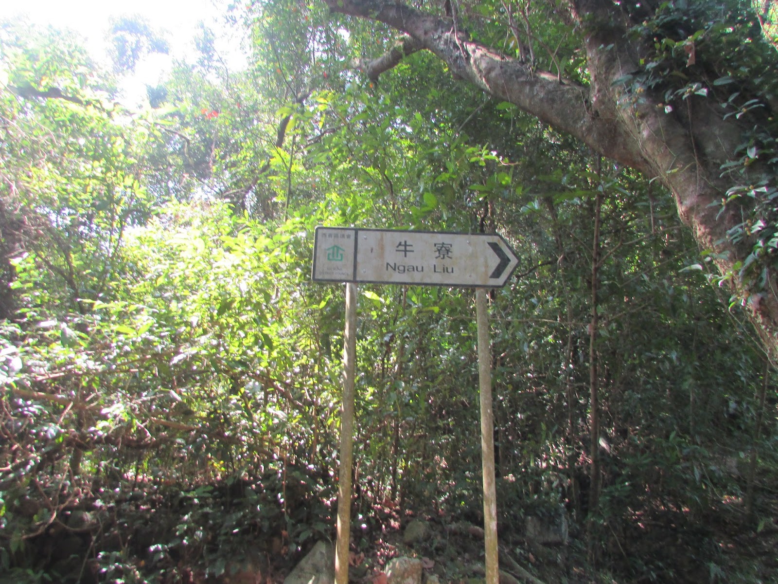 在井欄樹村裡覓路往西貢古道,部分位置路標欠清晰,加上村屋密集,遠足者或許感到有點迷失,甚至要向村民問詢,最後經過一所農莊外圍才入古道。古道初段先是上山樓梯,再落黃麖仔廢村,接著會經百花林路盡頭的幾座荒廢別墅,屋前放了地政總署的警告牌,似乎是施工時違反規定而被迫「爛尾」。下抵馬路,途經大藍湖村,先看附近的牛寮村,只有一戶人家居住,其餘的都已荒廢,但意想不到的是屋前晾著一些衣物,那裡可是郊遊徑大路一條,假日時人流不少,莫非戶主真的不怕衣服被人偷去?