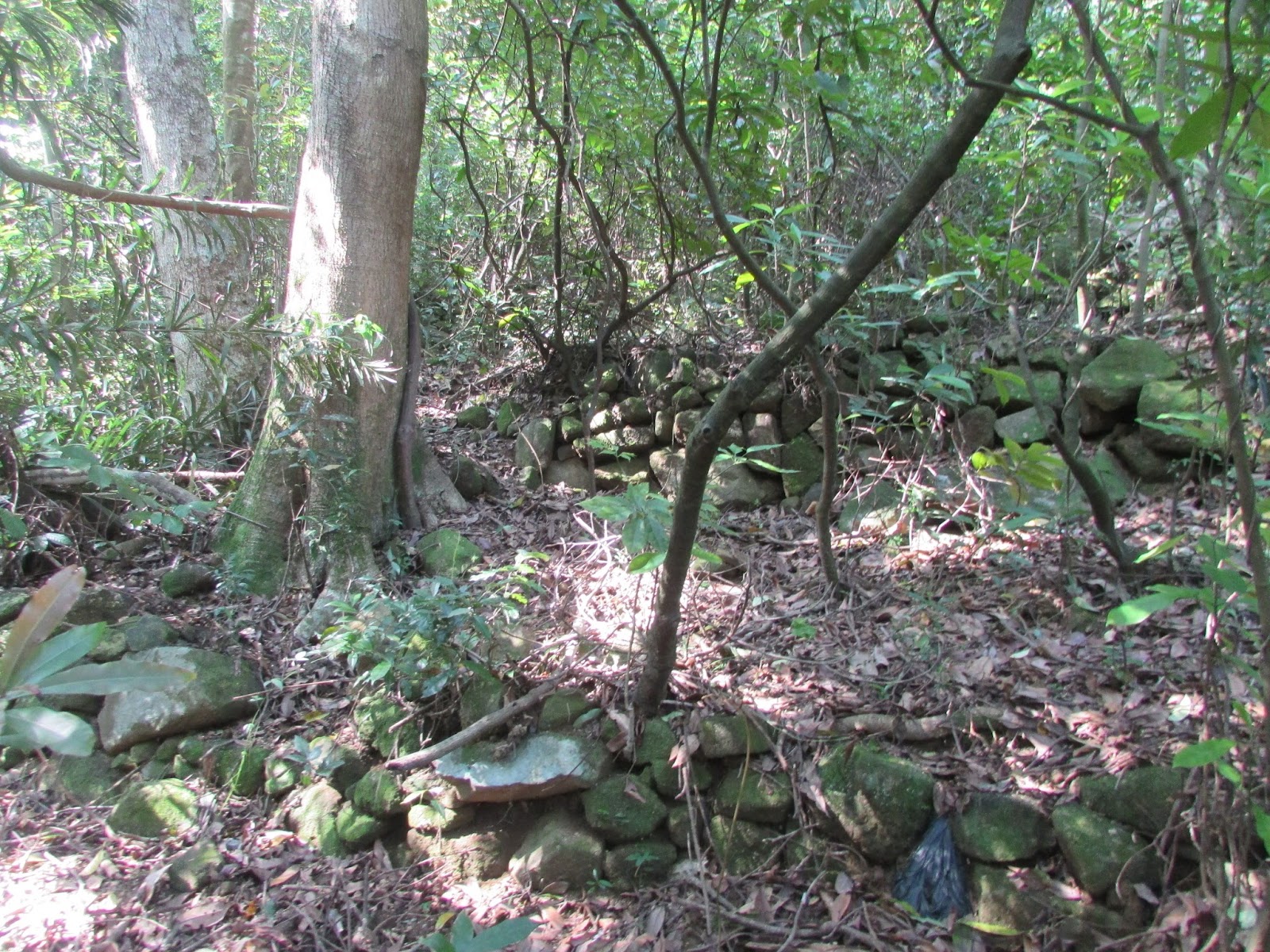 在樹林裡緩步上行,經過小溪及一些極高田壆之處,壆間有一隱蔽古道通大腦上洋。大腦上洋村地勢更高、更偏僻,荒廢年期隨時較大腦村還要長,原有古道石隙間也長滿植物,若非有遠足隊路標,相信也無從覓得。大腦上洋的廢屋都被野草包圍,然後接路標上麥徑,那段路況更為撲朔迷離,四周都有疑似隱路,更有非法入境者遺下的帆布、衣服等雜物,在此鑽了十餘分鐘,末段接草林小徑出「萬里長城」。