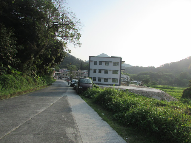 到水塘盡頭處轉山徑,經「流水橋」、「龍山橋」及昔日的雲山下村遺址上桔仔山坳,此時正值日落西山時分,夕陽照射在山下的元嶺及九龍坑群村。沿軍車路下行,廿分鐘步程抵達九龍坑村,本來還希望一探村中的「盤王古廟」,可是古廟位置相當深入,惟恐時間不足,只好下回重遊。