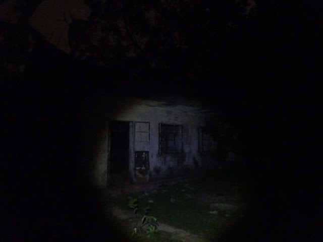 再走約半公里的元荃古道,循指示牌轉入上塘廢村,步程約五分鐘。上塘廢村已經到過很多次,但夜探卻是第一次,途中感覺似乎有點漫長。一入村先經過小片廢田,近一星期乾旱少雨,田上沒有泥濘,故能輕鬆地到達廢屋群。例牌在兩層高的「文苑」廢屋前「打卡」,原路返回元荃古道,因為往其他方向的路都不適合夜行的。