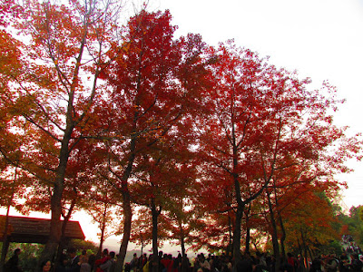 走上路邊的水泥平台,從稍高處欣賞紅葉: