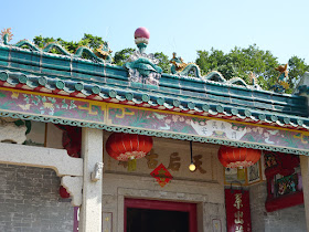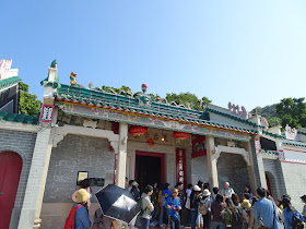 在彩虹站乘巴士往清水灣巴士總站,之後要沿大坳門路下行近半小時才到大廟坳路口。大廟坳是清水灣鄉村俱樂部的入口,旁邊有樓梯直達碼頭旁邊的佛堂門天后廟。佛堂門天后廟始建於南宋時期,歷史超過750年,屬境內甚至廣東省最古老的天后廟之一,而且建築規模亦頗大,每年天后誕期間(農曆三月廿二和廿三)更有街渡接載信眾往來天后廟與北角,稱之「大廟」可謂合理不過。