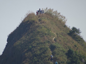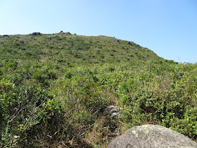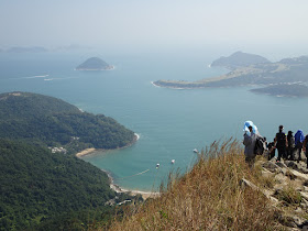 走完漫長的樓梯,路況變得稍為平緩,在樹林裡不停前行,來到人聲鼎沸的地方,原來已到往大坳門及登上釣魚翁頂的四叉路口。登上釣魚翁頂的小徑沒甚密林,快到山頂時斜度亦顯著增加,或需雙手輔助,同時又有一行幾十人的遠足隊下山,難免要互相遷就一下。