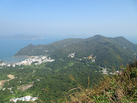 再次回到大廟坳,沿釣魚翁郊遊徑逆走向釣魚翁方向進發,首先要登上海拔273米的田下山附近,初段還可下望大廟灣、東龍洲和形同布袋的布袋澳海灣,而布袋澳後方的山崗則是清水灣鄉村俱樂部的其中一角。是日沒登田下山頂,很快急降至位處山坳的蝦山篤,之後又不斷上樓梯,一口氣登上近百米高度。郊遊徑長約六公里,近大廟坳的兩公里路對體力需求頗大,要是順走郊遊徑,肯定是先甜後苦的旅程。