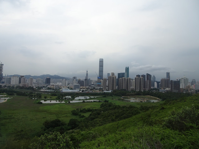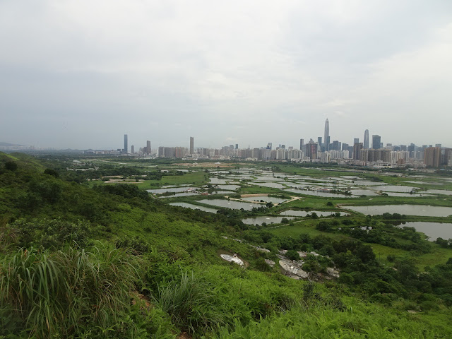 此時已是六點,相信也沒時間再上蛇嶺、鐵坑山了,於是在平坦的禁區外圍馬路走往落馬洲方向,至落馬洲路向左步回新田,順道繞經洲頭村往青山公路,結束悶熱天氣下的半天行程。