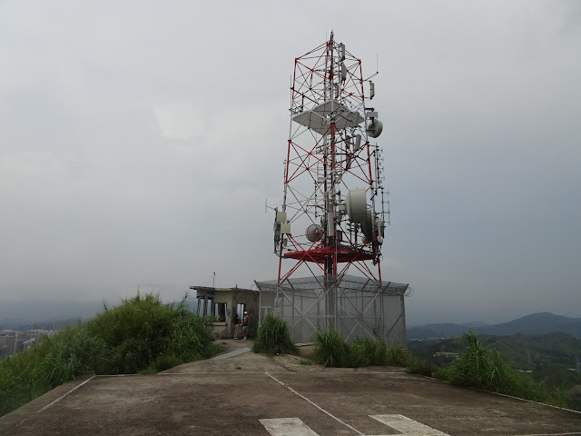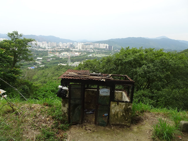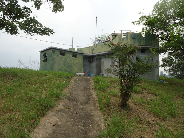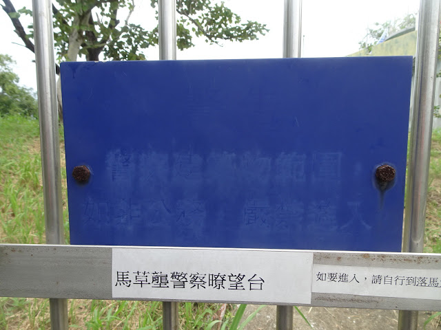 二、三十公里外的深圳龍崗一帶不斷有對流發展,在山頂停留期間不時聽到陣陣悶雷。取西北脊下馬草壟,小徑明顯但兩邊植物較茂密,而葉片相當蓬鬆,令上身黏著不少植物碎屑,與此同時地面充滿浮沙碎石,很易滑倒。按地圖沿馬路直上馬草壟麥景陶碉堡(警崗),屬二戰後警務處在邊境興建的七座警崗之一。碉堡以北開揚處乃俯瞰蠔殼圍魚塘群,大大小小魚塘至少一百個。向偏北面過往從未走過的小徑下馬草壟信義新村附近,靠近馬路時會穿過一些山墳。