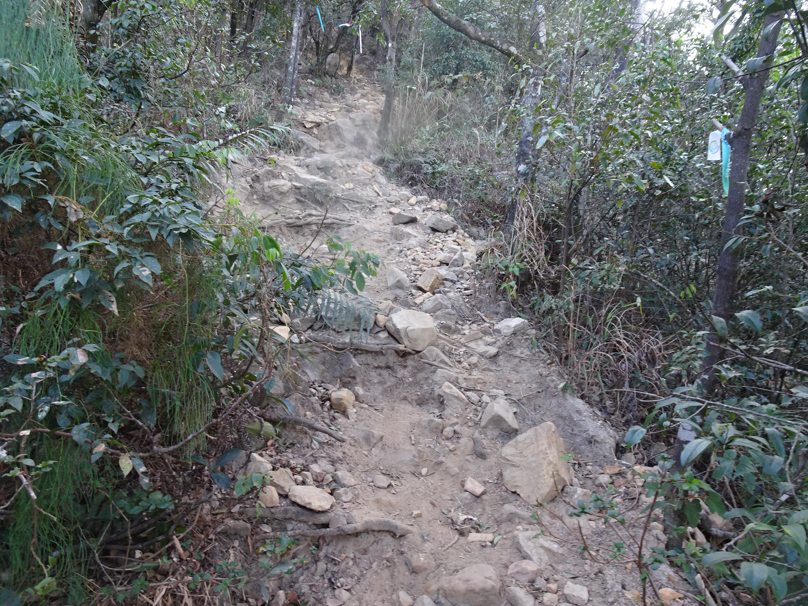 過了驛站,按指示牌繼續上山,正式進入崎嶇山徑: