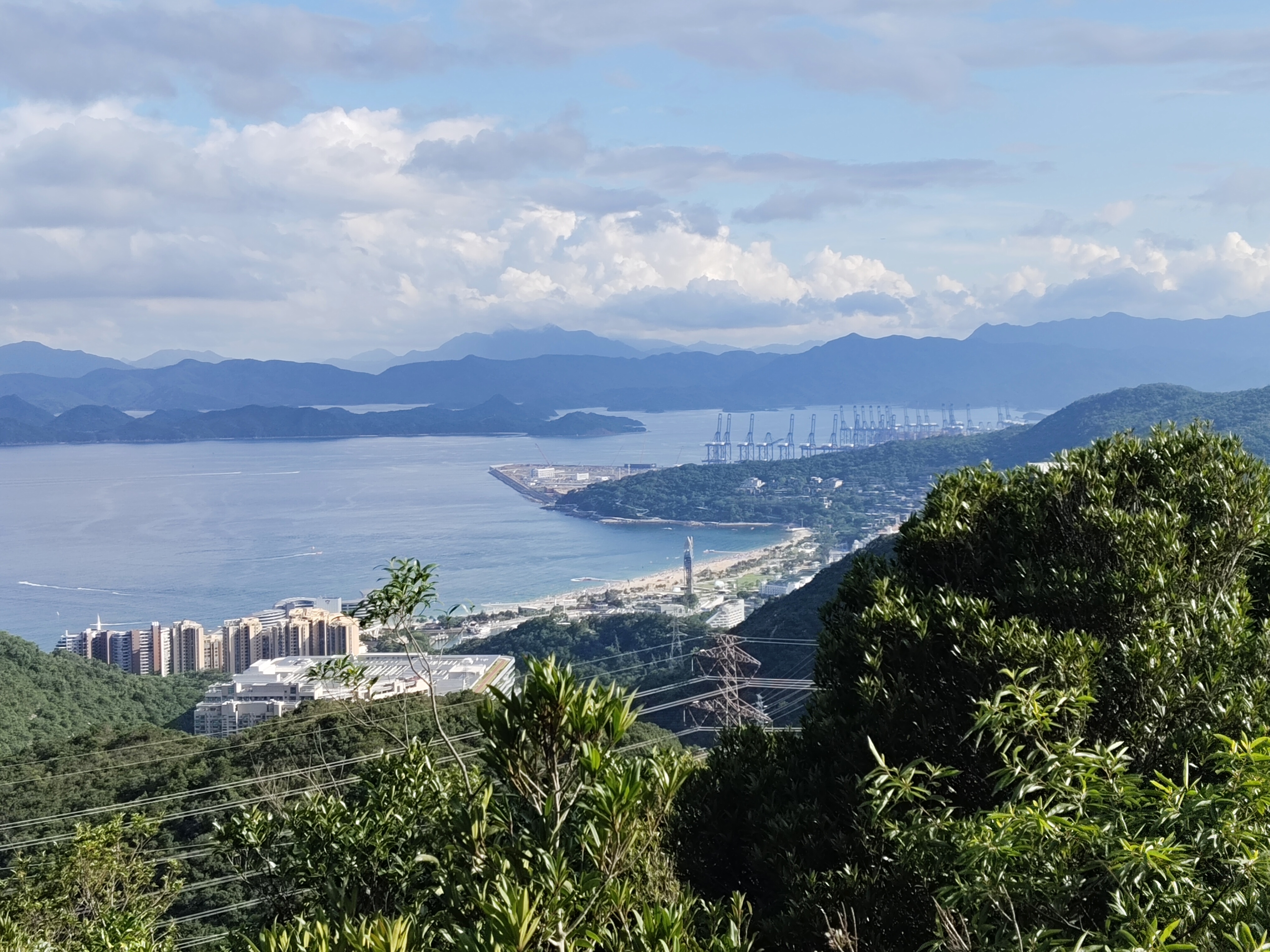 該綠道與全長超過38公里的馬巒山環線重疊,抵達YML04標距柱後的明顯路口,在靠右處的樓梯繼續上山,沿途一直在電塔架間穿越,其中一座電塔還貼著中電的通告,到底是否其中一道內地供港的電網?隨高度上升,山下的大鵬灣景色顯得更開揚,可同時俯望大梅沙及小梅沙。