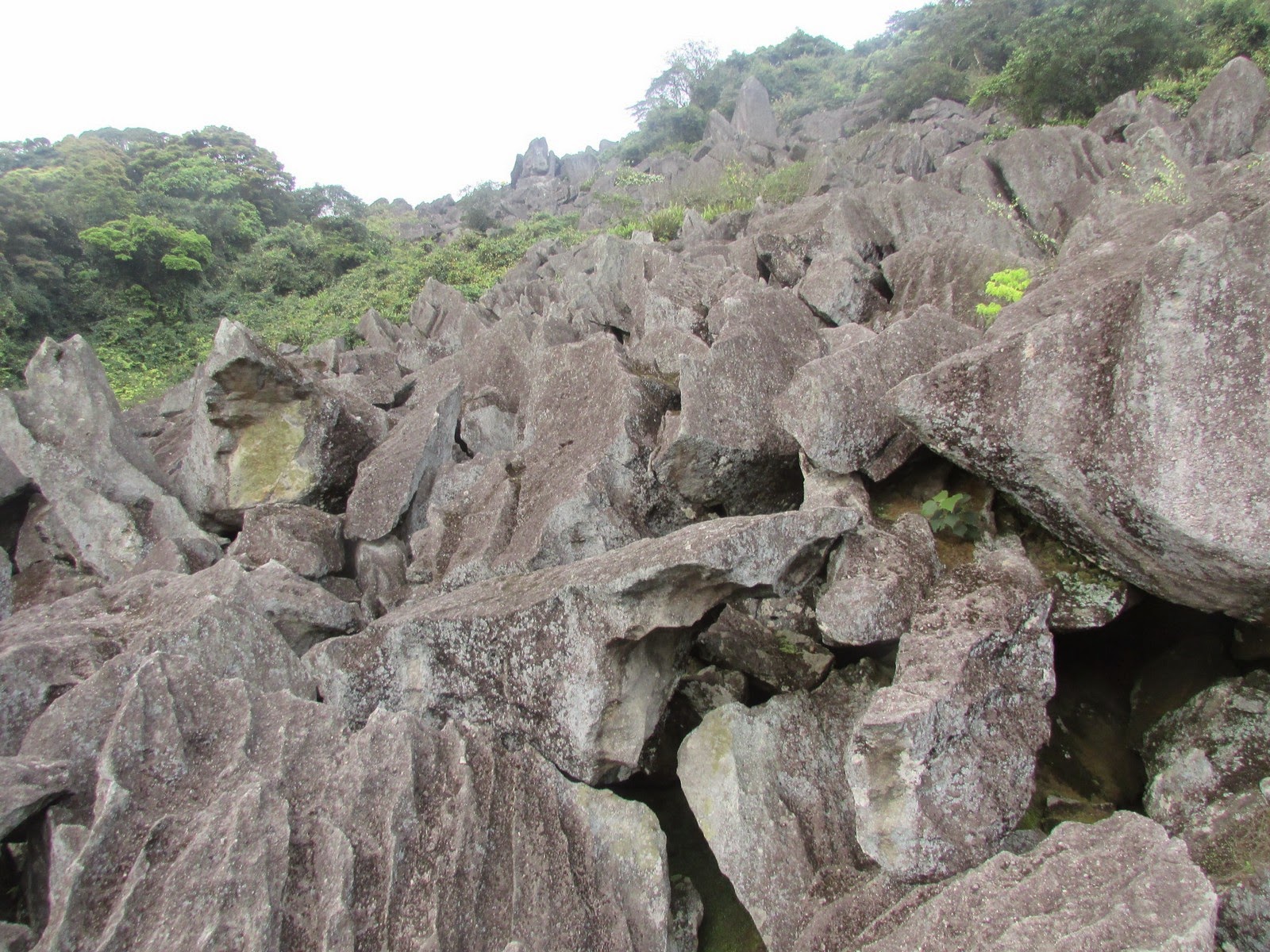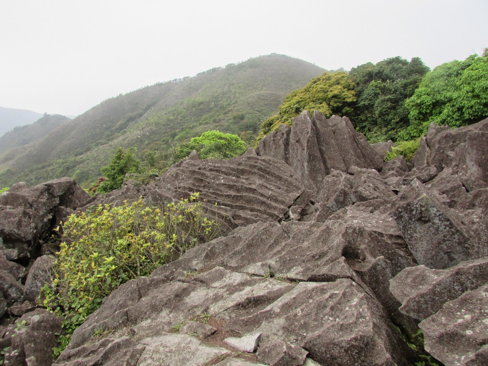 是日相約友人,挑戰全城最大的石林--石壟仔石林。石林位處鹿巢山石壟仔村之上,面積約七萬平方米,海拔330至430米之間,據說那裡原是個懸崖,後來懸崖塌下,碎石散在崖底的山坡上,成為石林,而大部分岩石在長年累月的風化下,石面形成一道道深溝,頗為鋒利,讓人難以站穩其上;因岩石是不規則的疊在一起,故石間亦存在不少深隙,部分位置更深不見底(最少二十米),如有失足,或許「九死一生」,走在那座石林,像穿過幾十個狗牙嶺「一線生機」似的。石林內並無明顯路徑,相當自由,但太自由卻易令人迷失方向,走在其中,必有良好方向感,否則會令你迷失在石間,浪費大量體力。石林內的震憾感及難度遠較相片為高,要不停的手足並用,才可順利登上鹿巢山頂。或許是日天氣濕暖,頗為辛苦,坳仔幸好在本年一月十七日的行程中未能找對石林入口,否則可能在入黑後還困在石林裡。