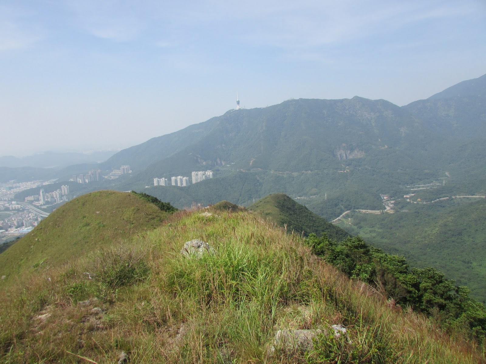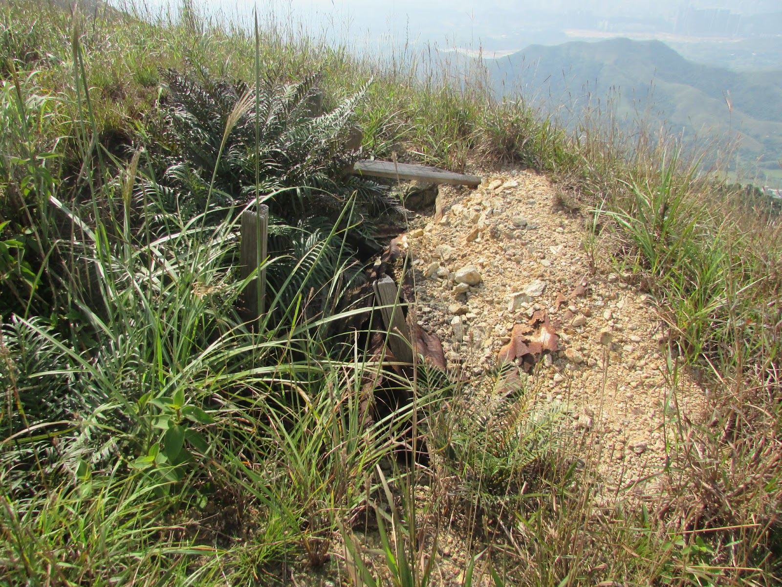 由440山頭而下的小徑非常斜,急降過後就是往紅花寨的山脊,視野頓時變得相當開揚,可盡賞沙頭角海一帶及沿岸美景。脊上有道明顯的植被分界線,草在南麓,林在北麓,事實上在八仙嶺、大帽山、大東山、雞公嶺都有類似景象,未知地理或生物學高手能否解釋到此景象呢。
