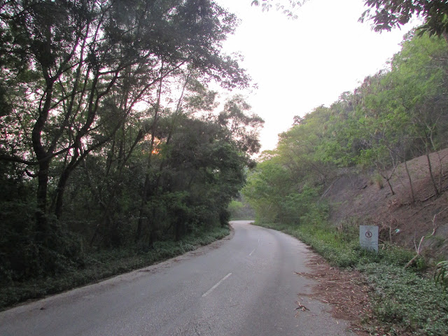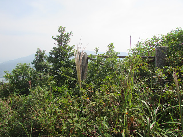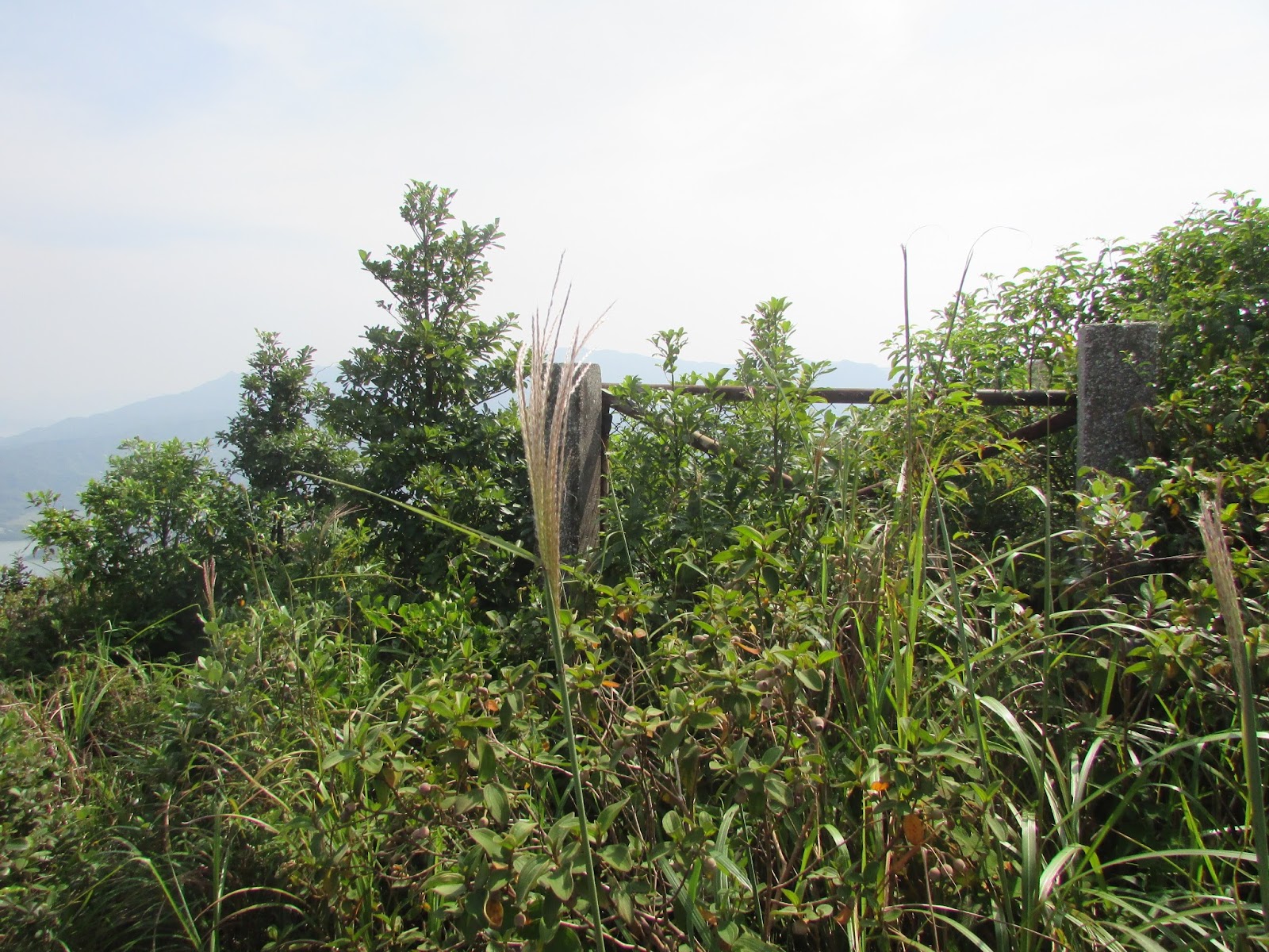 由擔水坑村村末上山,又再經同樣的小徑上亞公頂英軍瞭望亭。上山途中路邊樹叢忽然傳來「熟悉」的聲音,原來有一頭野豬快速的鑽進叢林深處,前後一分鐘內都兩度聽到叢林搖晃的聲響。連續兩日都在相近的山頭遇上野豬,而牠們更在正午時份四出覓食,有點不可思義。就在遇上豬群後不久,就有一些遊人在下山,而再過十分鐘步程,更有一群約三十人的隊伍也在下山,因小徑狹窄,只好把身子緊靠樹上,讓迎頭的遊人悉數通過後,才繼續上瞭望亭。在瞭望亭附近,還有座荒廢的營房及一些戰壕,在此欣賞一會後,就繼續上440山頭。