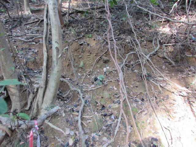 過第二道小澗前先急降一段,這裡有很多樹藤,也有野豬挖食樹根的痕跡: