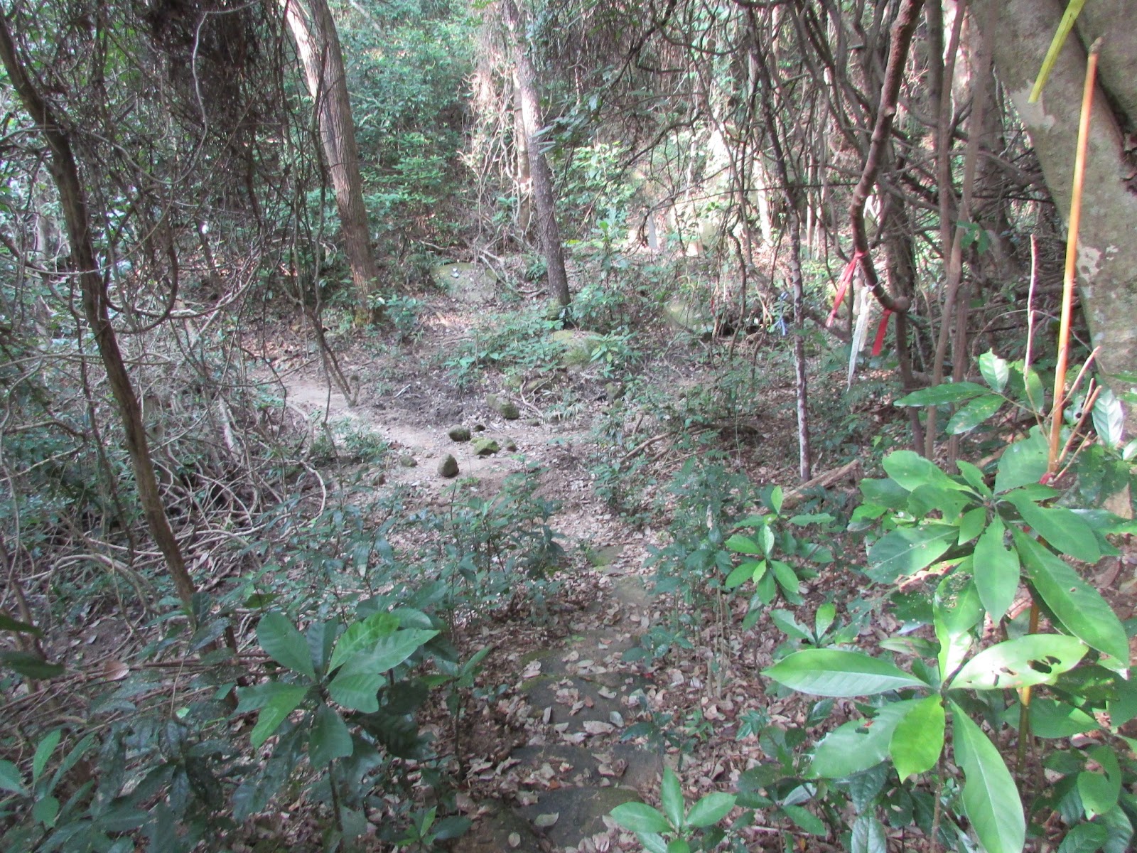 在樹林裡穿梭,時而有歧路,但引路帶亦不少: