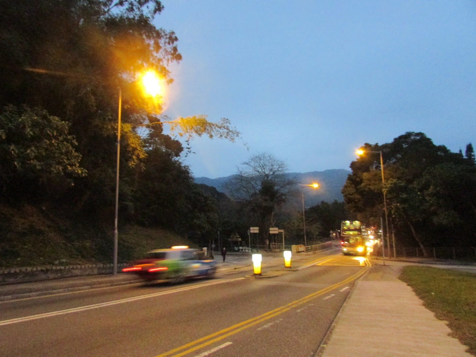 原路返回孟公窩路,此時路燈已亮起: