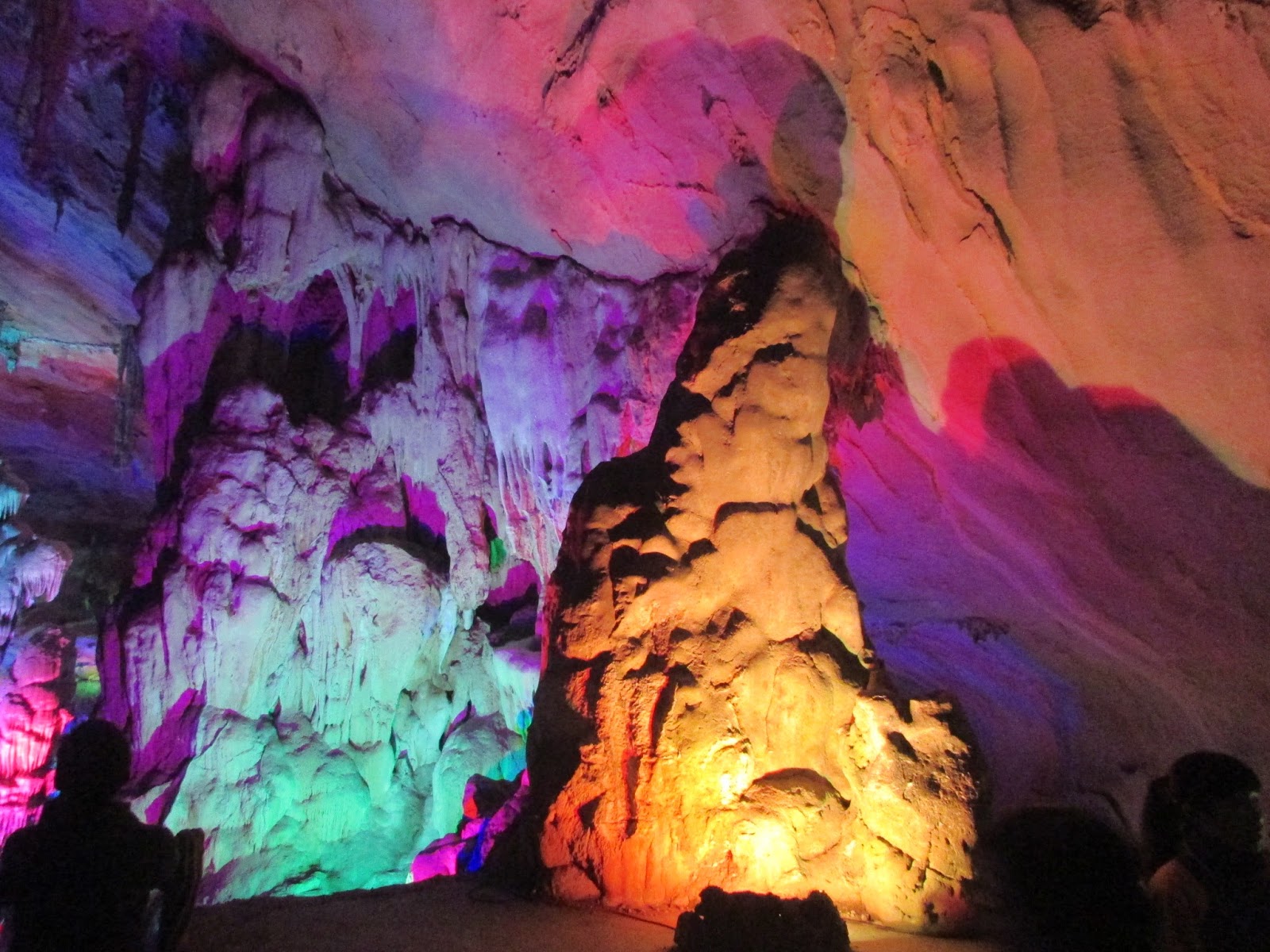 遊船後驅車往特產店讓我們選購特產,約半小時後到連州地下河景區餐廳,享用「臘味飯」宴,然後探遊地下河溶洞,洞內岩石以鐘乳石為主,裡面的景觀包括「望夫石」、「盤龍池」、「鐘乳石世界」等,不過具體的名字始終都是靠想像,走了一公里半路後就乘地下河遊船,遊船同樣分三峽(香蕉峽、蓮花峽及龍門峽),中後段時還有一道又闊又雄偉的瀑布,臨到出口時還見新闢的「洞內商業區」,展出多罐當地著名的黃精酒。離開溶洞,依一段樓梯直上遊客中心,最後三點鐘離開景區。