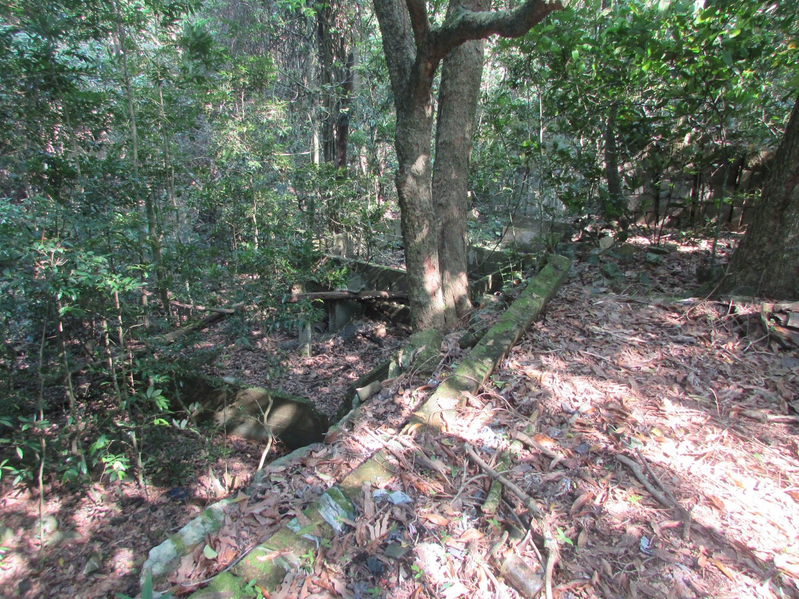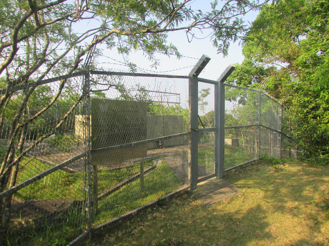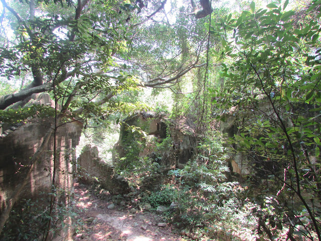 離開谷埔後轉上山路快速往榕樹坳,需時半小時,此段乃山腰路,最高點也僅五十米左右。榕樹坳村已荒廢三十餘年,不少村屋明顯破落,當年駐境英軍為村裡的最後一名住戶,把村口的「培文學校」改建成軍營,來堵截及囚禁非法入境者。事隔多年,軍營也已開始破落,野草叢生,主營房及廁所裡非常凌亂,原有擺設幾乎無可指認,僅旁邊的發電機房及兩座廁所暨浴室之擺設仍為完整。