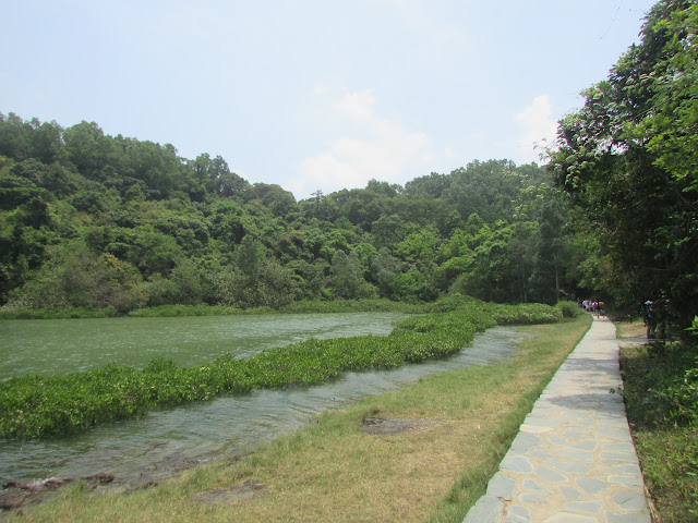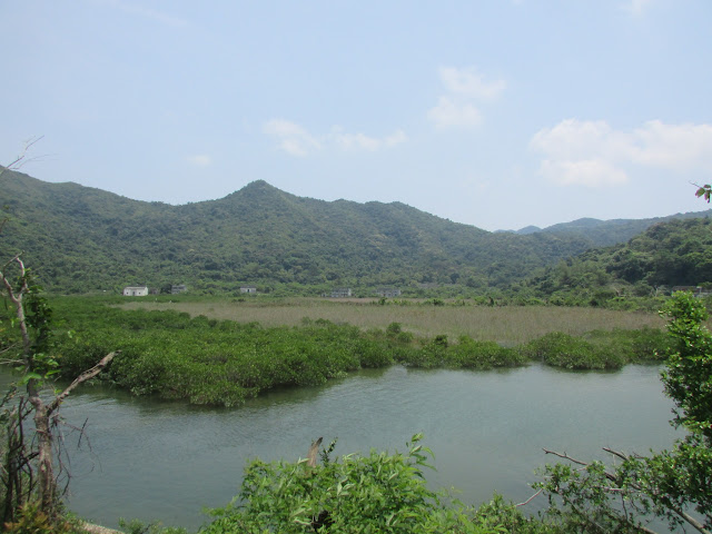 十一點在粉嶺站等候小巴至鹿頸,幸好候車人數較預期少,第三班就上車,雖然正值國內長假期,但沒甚同胞,因為他們都去西貢半島及大嶼山郊外了。從鹿頸起步,快速沿岸邊水泥村徑經鳳坑往谷埔村,由於當前是2.3米高的大漲潮,潮水幾乎沖至岸邊,如果水位再高十餘厘米,村徑或許會被埋在水中。從谷埔望向沙頭角禁區裡的新樓盤「尚澄」,雖然樓宇還未成型,不過幾天前已經開售,每平方呎更達萬元,定價頗為進取,幾乎貼近新界區新市鎮的水平。近年樓房價格不斷上揚,更開始脫離人均收入水平,然而香城屬自由經濟市場,加上業主的免疫力又越來越強,近年股市雖有幾次大跌市,但樓價下跌幅度卻越來越少,他們壓根兒不想把樓房賣出,寧可多買一家收租,最後準要變成永無止境的升市,除非香城再現大型天災罷了。