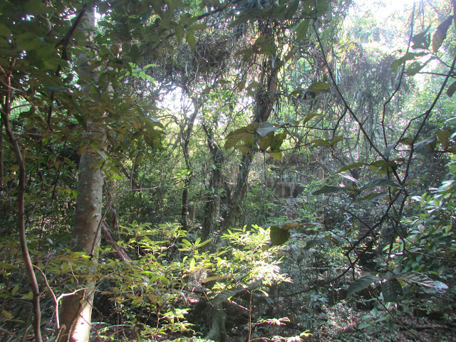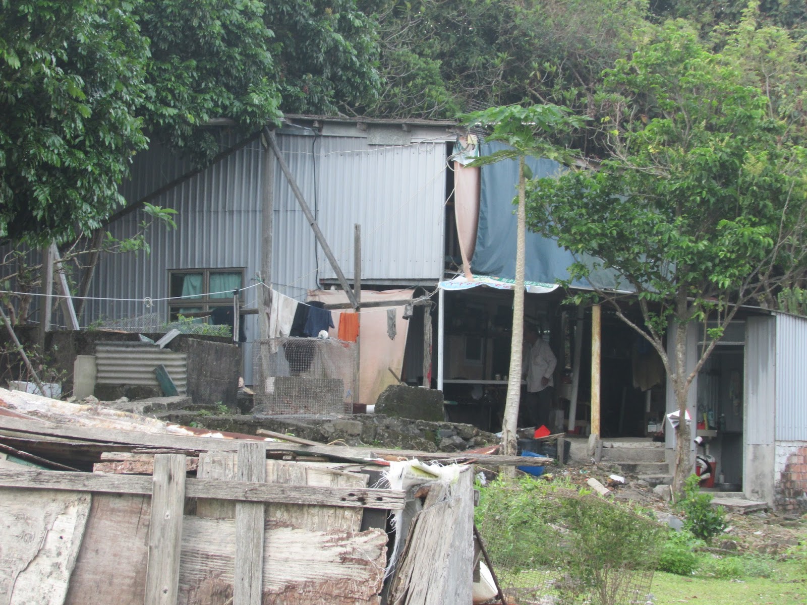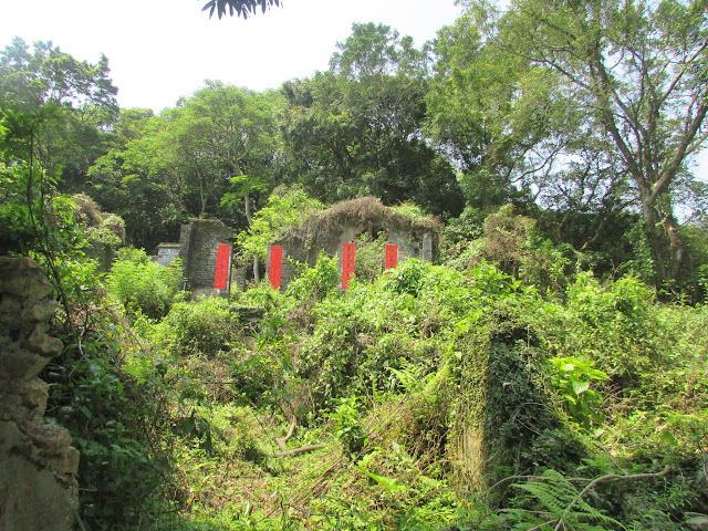 探過軍營,途經一排廢屋後過溪上山坳再落鎖羅盆,步程約半小時,上山初段為溪邊路段,地上有野豬出沒痕跡處處。抵達鎖羅盆時稍為轉右,看看村篤的廢屋,見有白煙升起的畫面,原來其中一戶原居民又回來了,順道閒聊一會,他每個星期日都會坐船回祖屋打理,不於屋舍過於破落,加上成本問題,所以未能進一步修箿其祖屋,否則就可在屋內過夜了。村民依舊在每年新春前為每戶祖屋貼上新春聯,可是今年陽光較多,那戶原居民守著的祖屋的春聯短短三個月就褪色。