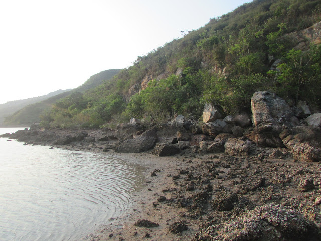 經海邊走幾分鐘到西流江,是一座荒僻及主要以鐵皮屋建成的漁村,前兩次(去年十一月及今年年初二)到訪時都無人,是日最少遇上三名村民,其中一名更主動問道要否汽水,惟坳仔婉拒了,因為袋中仍有最少一升水。沿岸邊經拗魚咀出三椏村,正值大退潮(水位僅0.5米高),基本上沒甚需要攀爬的位置,有如天然海濱長廊,惟步經內灣泥灘時仍得謹慎,吸腳的泥沼也同時出現在眼前,一不小心的話就把雙鞋插進沼澤了,甚至把鞋面、鞋底解體。六點抵達三椏村,因翌日仍是假期,所以士多老闆會通宵留守,坳仔也提早吃餐蛋麵及豆花作晚餐,然後經下苗田直出烏蛟騰,結束是日合共廿四公里的東北穿村大環走之旅。