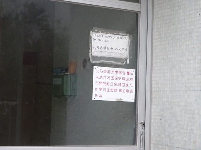九月中的颱風無論在風力還是風暴潮為上世紀八十年代以來最猛烈,無遮無擋的鶴咀當然首當其衝,雖然坳仔第一次來到鶴咀,沒有過往照片作對比,觀其環境,災情似乎頗為嚴重,仍具備廢墟感覺,長鬚鯨骨架最近海岸的一段給摧毀了。休息過後,再看看稍高處的宿舍外圍及全境最古老的燈塔,燈塔建於1875年,又稱「德己立角燈塔」,所以可看出鶴咀英文名字Cape D'Aguilar的由來。在燈塔外圍「打卡」,原路步行半小時,天色全黑之時抵達鶴咀巴士站,坳仔十分幸運,不到半分鐘巴士來了,最後乘車到筲箕灣站,結束連走砵甸乍山、歌連臣山、龍脊及鶴咀之旅,如在早上起步的話,還可細味鶴咀的大大小小景點,例如蟹洞、機鎗堡及學校等。