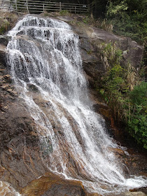 旅程不上梁野山頂,依舊在景區外等候導遊購票,然後乘環保車往山上的雲礤(讀音蔡,指粗石)村,再走近十分鐘才到上瀑布群的檢票口。10:00進入上瀑布群遊覽區,景點包括飛雲瀑、金龜瀑和最高處的古母石眺景台,映入眼簾的是分兩段的飛雲瀑,瀑水有如在雲際間飛濺而下。再上幾分鐘很陡的樓梯就到金龜瀑,瀑長明顯較飛雲瀑短,傳說的金龜在哪裡?是否想像力不夠?沿樓梯再上,就到上瀑布群遊覽區最高處,那是離山頂「古母石」最近的地方,同時回首山窩中的村落。遊覽過瀑布群,原路折返雲礤村,此時已差不多11:00。