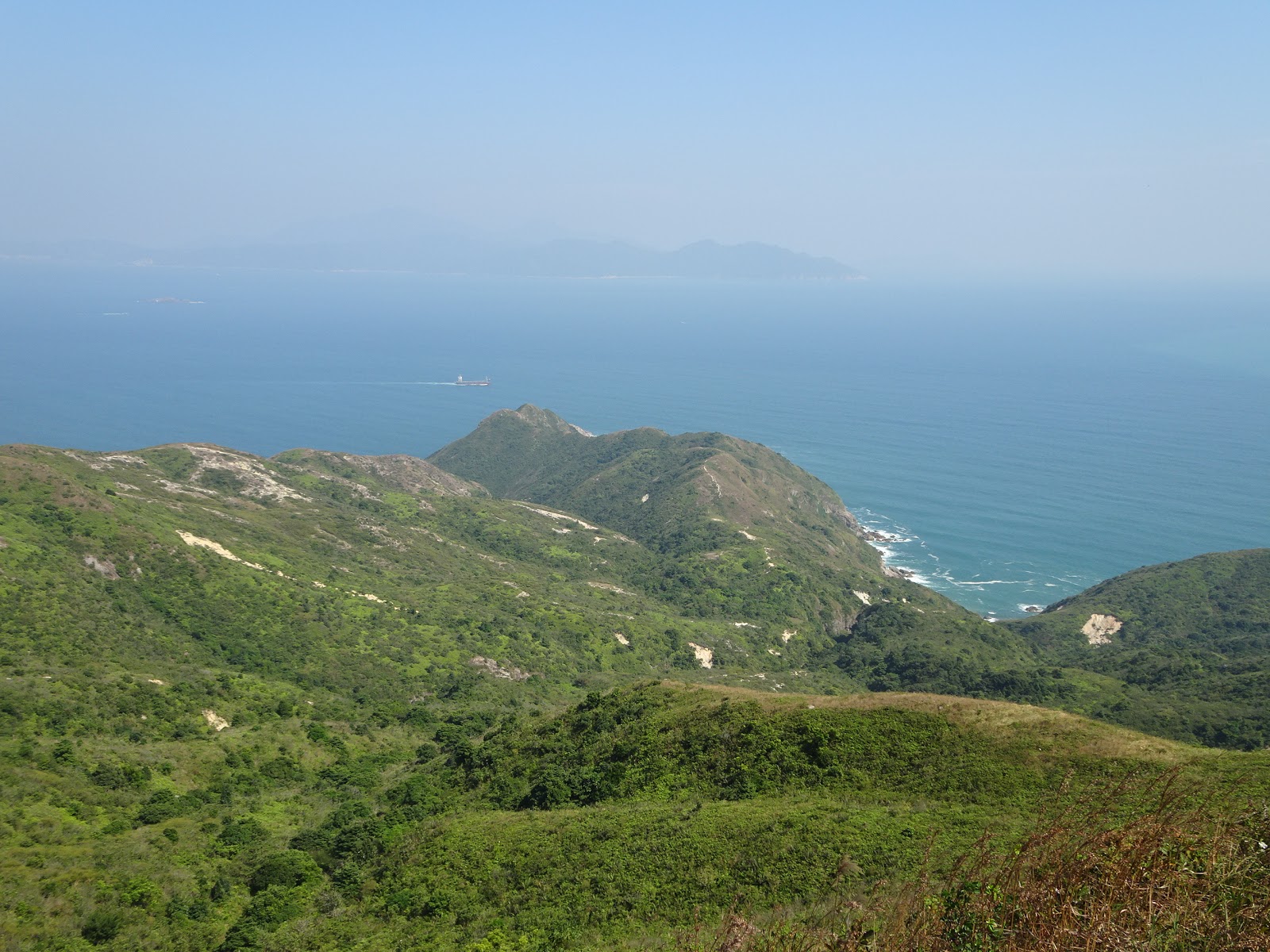 從東灣山頂下望短咀半島及旁邊的和尚洲、牛屎缽兩座荒島: