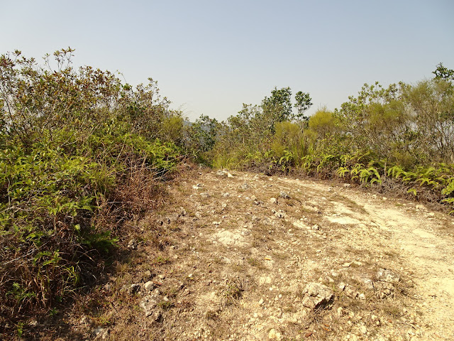穿過船灣淡水湖最盡處的涌尾,就變古道緩緩登上烏蛟騰。275R巴士將在翌日延伸至烏蛟騰,新的總站亦已準備就緒,由於近日大量市民會趁假期到郊外遠足享受清新空氣,相信首日的烏蛟騰巴士總站將會大受歡迎。十點半踏上船灣淡水湖郊遊徑,正式開始「環湖出咀」。首座要登上的山頭是馬頭峰,由於天晴和微風關係,上山時已有少許炎熱感,抵達馬頭峰時能見度亦較為遜色。在稍多浮沙碎石與亂石夾雜的山徑上上落落,經過赤馬頭、橫嶺主峰「雞仔峒」、橫嶺坳至大峒,當中「雞仔峒」海拔311米,為全趟及全郊遊徑之最高點。大峒至觀音峒路況大致平坦,如不計馬路,可謂全郊遊徑難度最低的一段。過了觀音峒東面的紅石門小徑入口,先沿樓梯急降紅石門坳,然後又急上鹿湖峒。