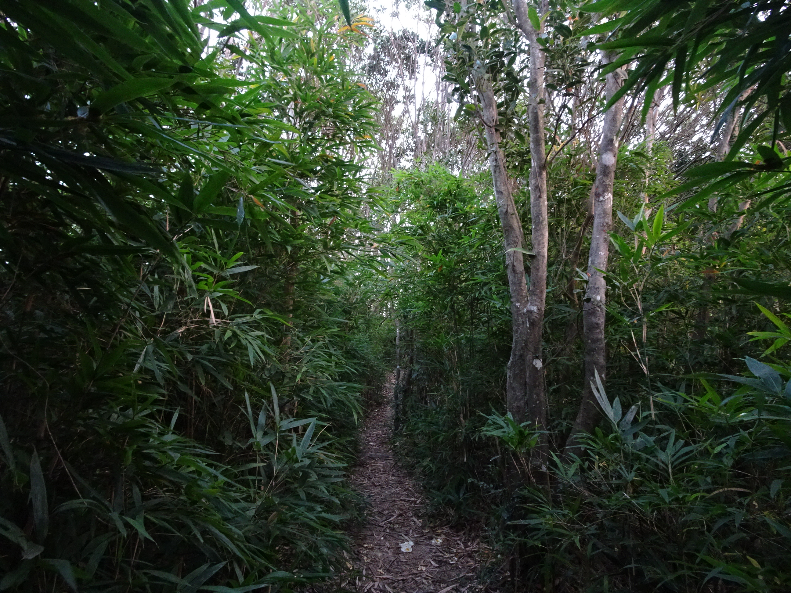 走至教育徑東端,在豎著「難行、前路雜草叢生」警告牌處進入九沙古道,屬筆架山北面的橫山徑,然而大部分為康莊大道,「難行」位置可能在古道盡處下行紅梅谷引水道的小段山徑。走了大半小時,於明顯路口處右轉踏上「貴妃徑」,再度前往麥徑五段,路邊翠竹密布,置身其中非常寫意,靠近麥徑時更偶遇只餘半壁的PB222機鎗堡與隧道遺址,幾分鐘步程外則有亦發現一堵石牆,估計同屬機鎗堡相關遺跡。寒潮迫近,隨天色轉暗,不單轉冷,風力更顯著增強,山脊上的樹木更吹至呼呼作響。經過回歸亭,沿清晰樓梯下行獅子山公園,入夜後仍有少量遊人上山,抵達獅子山公園後,再經天馬苑、橫頭磡邨步回樂富站,結束半天行程。