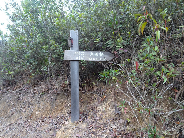 原路折返鳳凰笏頂、「跌死狗」至鹿湖峒回到船灣淡水湖郊遊徑,其實離大尾篤的終點還餘下達十一公里,似乎逐漸有成功在望感覺,可能完程時間已預計到。沿樓楊急降鵝髻頂附近之山坳,再次遇上剛才被超越的遊人,畢竟很多人回程時都想輕鬆一點、快一點,走南面的山腰小徑回郊遊徑,然而坳仔每次都選擇「做戲做全套」,捨易取難。鵝髻頂過後高度逐漸下降,在海拔約100米的脊線走著,經過虎頭沙、三門山上長牌墩,只有長牌墩有標示。長牌墩後還有一座小山崗才抵達副壩,斜度還有點急,的確較難受,尤其後期體力已消耗得七七八八,某程度上更是遠足界「曼德拉效應」例子,或許個人以至不少人潛意識認為長牌墩一下山就到副壩。
