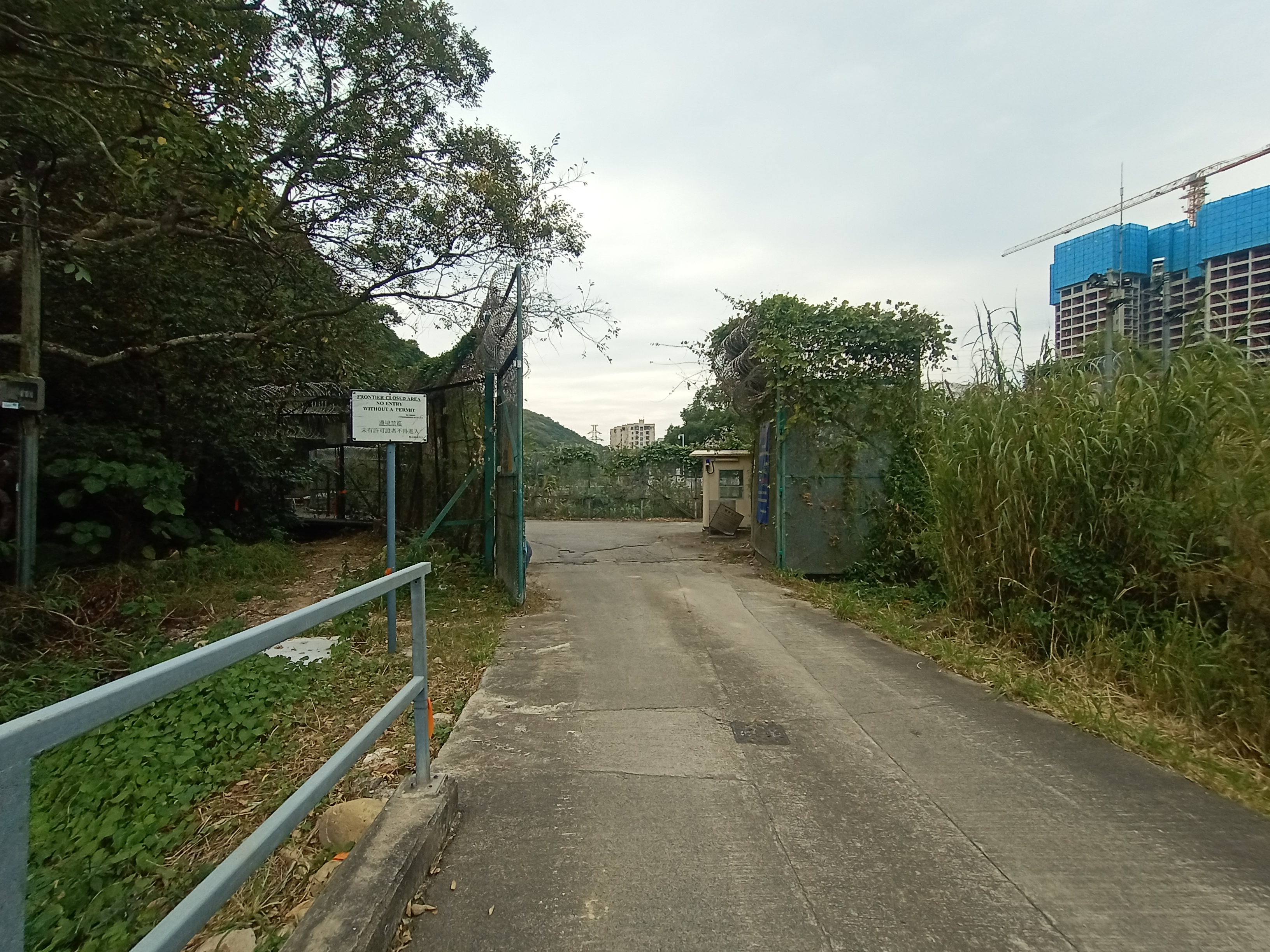 下達蓮麻坑路,禁區界線比幾年前禁區開放初期東移了數百米,記得當年要走至十二號警崗才離開山腰繞道。漫步蓮麻坑路至白虎山,經過某農莊時發現有汽水供應,大家都按捺不住,秒速喝完。終點在望,步上白虎山麥景陶碉堡「打卡」,並在和風中賞景,該處幾乎座落全境最北極,三面被深圳蓮塘的住宅群包圍,像瞬間偷渡至內地市區,但實際身處卻是很偏遠的邊境鄉郊,充滿虛幻感覺,對於一些疫情前經常北上的人來說,倒起望梅止渴的作用,屈指一算,原來已屆千日。腳下的香園圍口岸,貨運服務雖然早在前年八月啟用,但客運服務的啟用仍遙遙無期,除非內地堅守的價值觀得以改變。碉堡稍低處,還有兩座已廢棄的舊式機鎗堡,相信都出於其地理位置,方便監察東、西及北面而至的偷渡客。回到蓮麻坑路,原本計劃走至香園圍口岸外的松園下巴士總站,但步至香園圍村口時,就見往上水的小巴駛來,大家於是立即結束行程,行程豐富的星期日在此畫上句號。