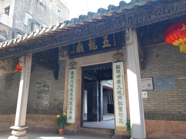 在牌坊另一側北上,過了一個巷口,頓時沒見遊人,穿過螺峰梁公祠與二聖宮,走至馬路步往龍潭。馬路被標註為「綠道」,只讓步行或緩步跑,實際卻不時有車輛途經。路邊有無數魚塘,還有一些牛在塘邊吃草,好一片魚米之鄉風貌。按照地圖,大約走了半小時就到龍潭,成功在龍年首天到訪帶龍字兼極富龍舟風情的地方。