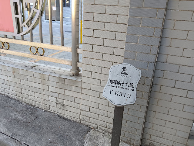 斗米田山塘往金沙大道有兩道路線,可續走森林防火步道或沿馬路直降而下,翻看網上的鯤鵬徑第十六段軌跡圖,兩路近期均有人走過,難免讓人迷惑,但據知後者出口處會有閘攔阻,於是坳仔走前者,下山梯級的坡度亦非常急,至於標距柱方面,自斗米田山塘前的YK334後,直至金沙大道都沒發現任何標距柱了,儘管出口處標示鯤鵬徑從森林防火步道走來,真的不知在另一邊的馬路還是根本沒有